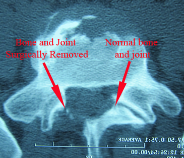 The bone, ligament and joint removed is typically completely normal and healthy, doing an important job in the spine. But, removing it causes permanent damage and there may be permanent symptoms because of this damage (Failed Back Surgery Syndrome).