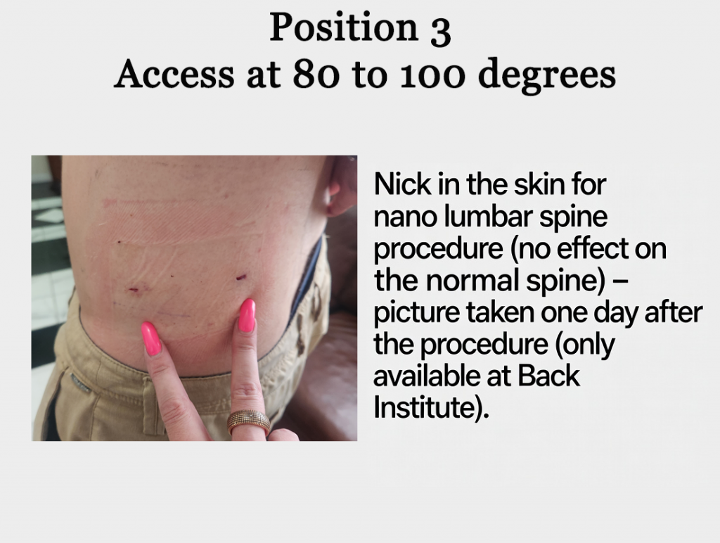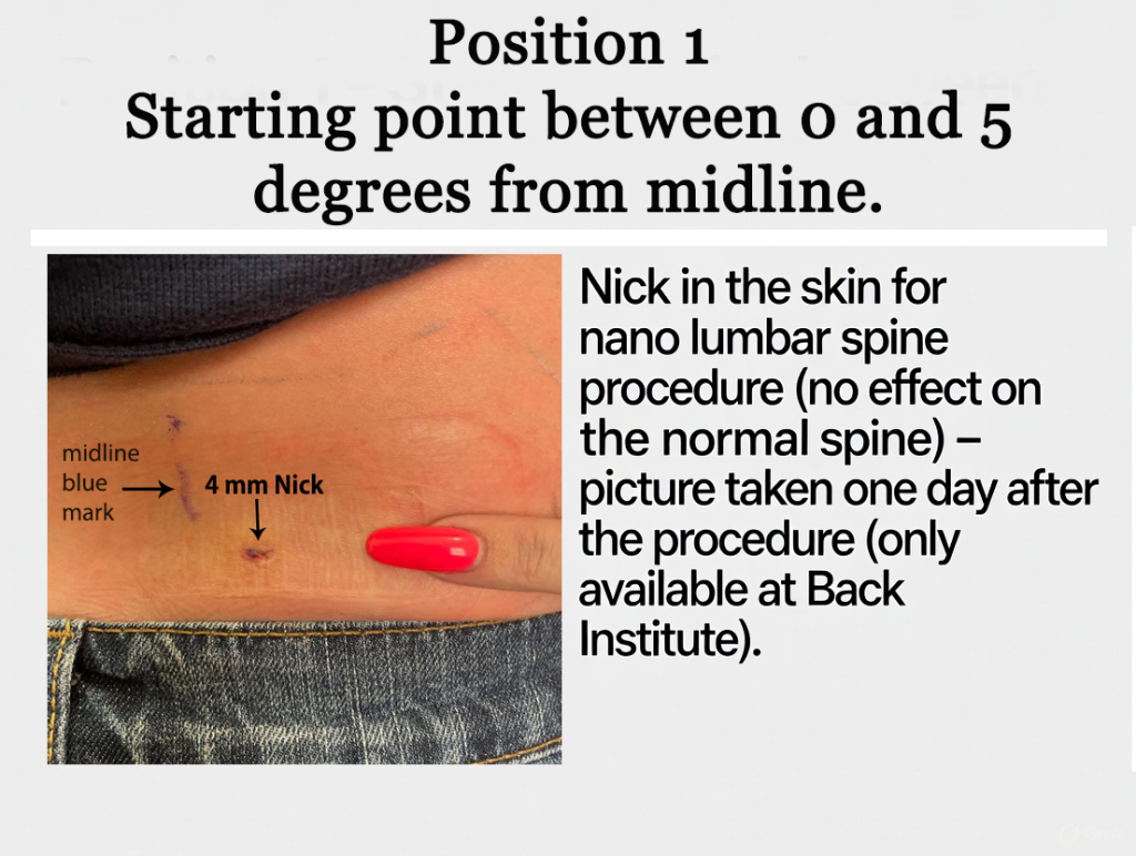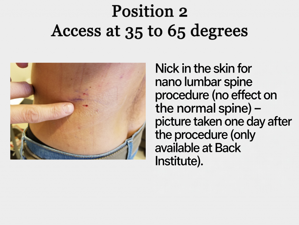 In a Nano Discectomy, there is no cutting, no bleeding and no scarring. So patients are left with only a dot opening that is covered with a band aid.